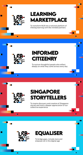 Our response to these disruptions was LAB25 (Libraries and Archives Blueprint 2025), developed through rounds of brainstorming and visioning exercises with various stakeholder groups such as our patrons, partners, and communities. We looked at not just the libraries and archives space, but other related industries as well, such as the retail and content sectors, to see the innovations we could tap.